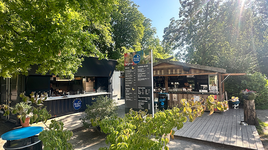 Jedes Jahr zum 1. Mai öffnet der lounige Sommerbiergarten mit Self-Service und Grillhütte. Werktags ab 13 Uhr, am Wochenende schon ab 11 Uhr dürfen sich Ausflügler hier auf BBQ-Spezialitäten wie Pulled Pork Burger oder Bratwurst aus der Landmetzgerei Merschformann freuen. Veganer wählen die Köttbullar mit Tomatengemüse-Sugo oder das Kichererbsen-Curry.