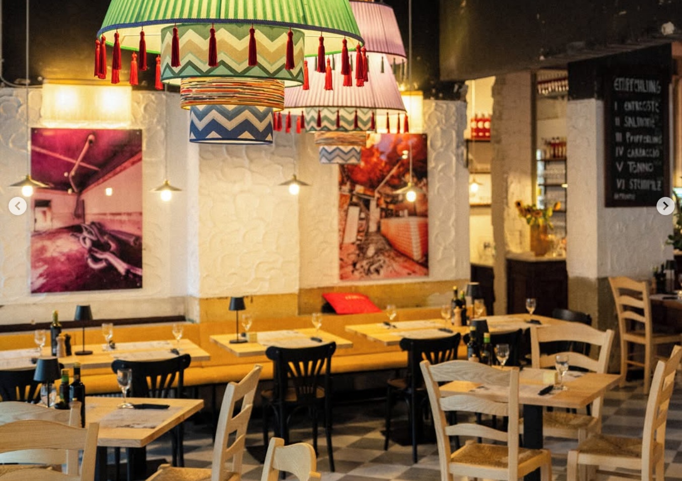 Das riesige Ladenlokal wurde mit ganz viel Liebe zum Detail renoviert und vereint industrial Elemente (frei verlegte Rohre etc) mit gemütlichem Vintage -Charme. Das Holz der Theke beispielsweise stammt aus der Nähe Venedigs und ist über 100 Jahre alt, am Boden sorgt mallorquinische Marmor für viel Atmosphäre. Drinnen finden 150 Gäste Platz, draußen am Rosenplatz vor den bodentiefen, aufschiebbaren Fenstern weitere 40 - ab Frühjahr 26 kommen im Hinterhof nochmal 90 Plätze dazu!