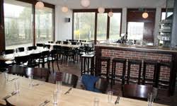 Schön gelegenes, rundum verglastes modernes Bistro mit vielseitiger Karte und schöner Terrasse am Sportpark Blau-Weiss Aasee